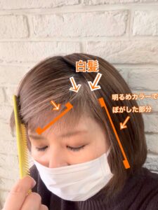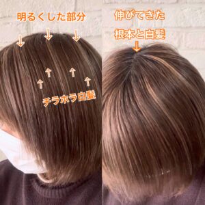 周りの髪の明るさで、白髪を目立たなくするカラーです。