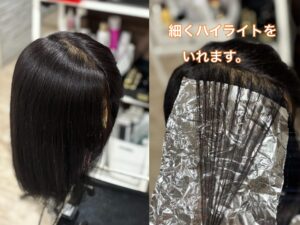 暗めのカラーされている方は、部分的にブリーチを使って明るさを出します。